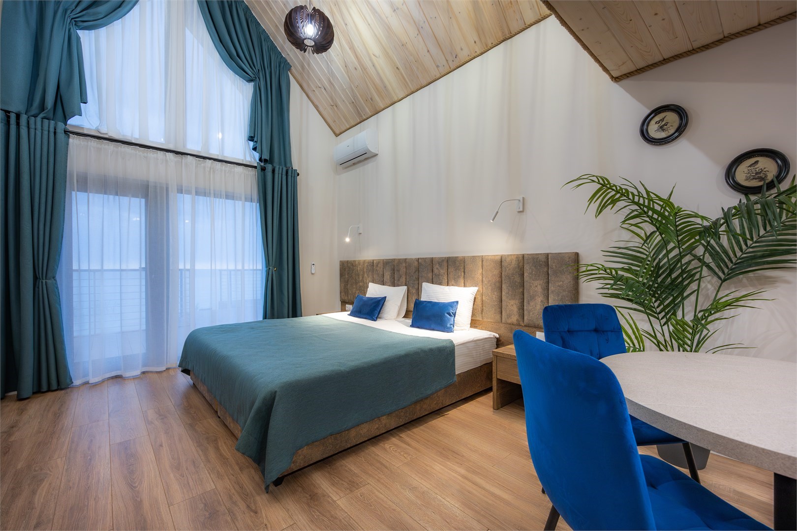 Уютный двухуровневый номер площадью 39 м², рассчитанный на размещение до четырёх гостей с возможностью дополнительного места — всего до пяти человек. Один ребёнок до 3 лет может проживать без предоставления отдельного спального места.