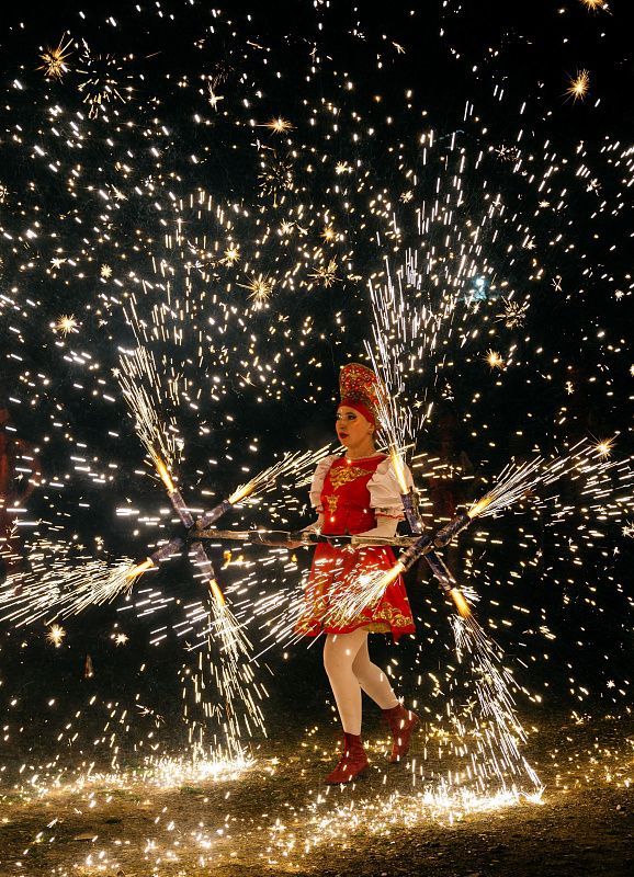 Вечер завершился концертом зажигательной кавер-группы «Бакс Бани». Яркой кульминацией праздника стало выступление театра огня «Калипсо» и прощание с чучелом Масленицы.