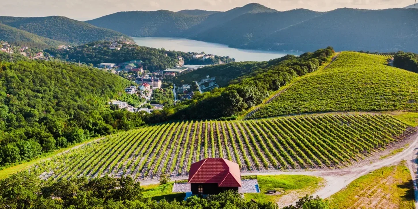 Из этой точки открываются завораживающие панорамные виды. Перед гостями простираются бескрайние поля винограда, уходящие в горизонт, величественное озеро Абрау и сверкающая гладь Чёрного моря. Пейзажи меняются в зависимости от времени суток: утренний свет делает цвета мягкими и пастельными, дневное солнце подчёркивает глубину зелени, а закат окрашивает всё вокруг в золотые и розовые тона.