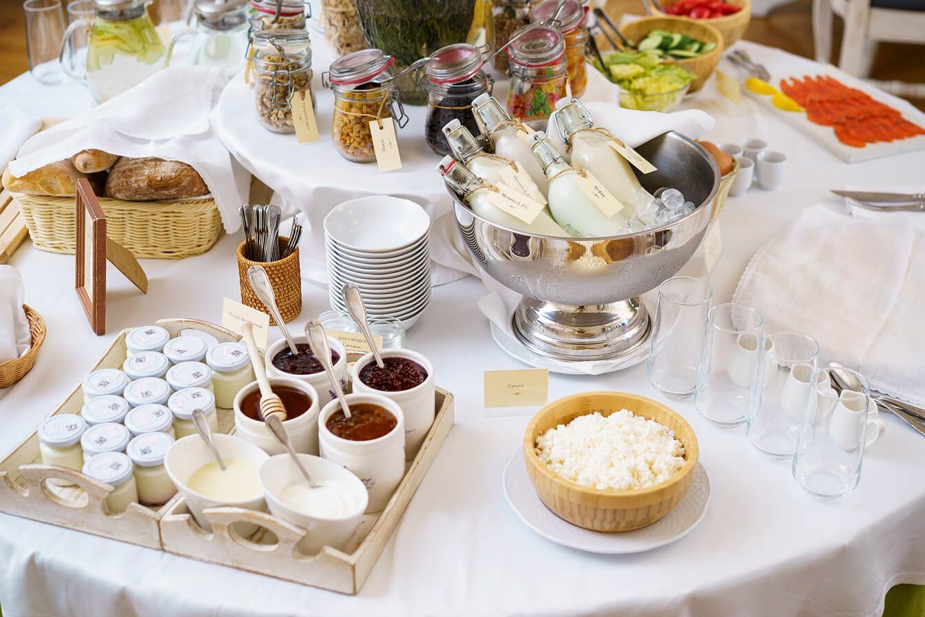 Здесь проходят завтраки для гостей отеля «Империал» по системе шведский стол: нарезка локальных сыров, колбас, овощей, фруктов, а также выпечка и десерты от кондитерской «Абрау-Дюрсо», отдельно подаются горячие блюда. Предлагается начать день не только с чая, кофе, сока или кисломолочного напитка, но и с бокала игристого, которое здесь представлено в широком ассортименте. Работает система room-service. С балкона ресторана открывается красивый вид на озеро Абрау.