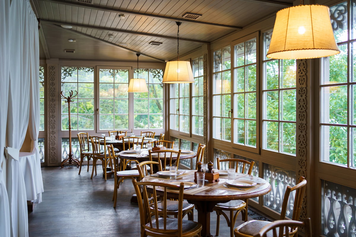 Пространство ресторана включает основной зал, балкон, три VIP-зала, летнюю галерею и энотеку.