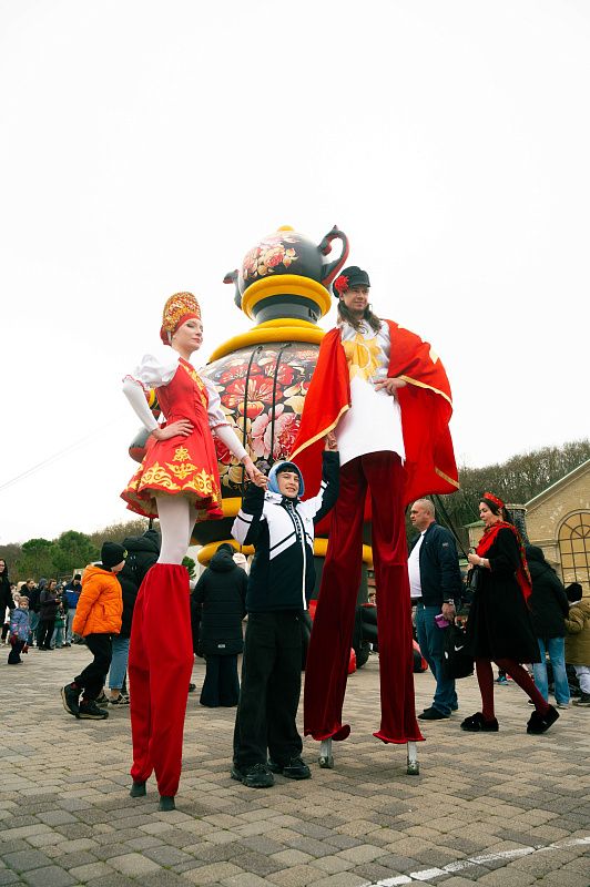 На сцене выступили кубанский казачий квартет «Кумовья», исполнившие народные песни. Гости также увидели яркое шоу ходулистов и сделали памятные фото с аниматорами в костюмах.