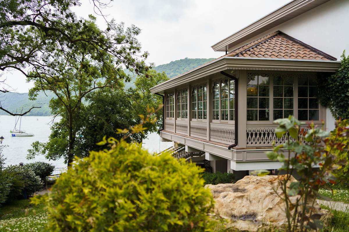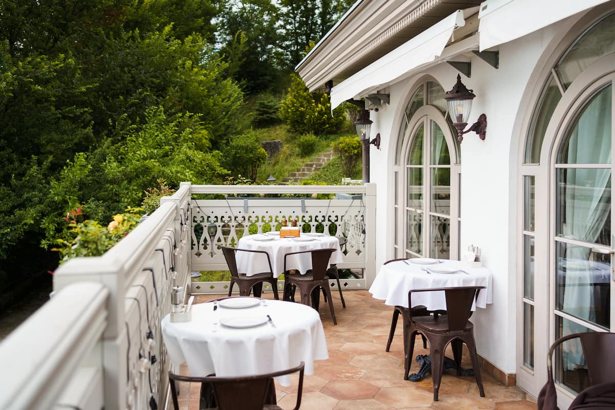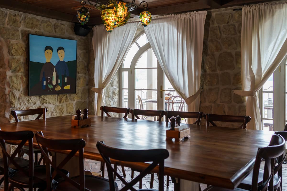 Пространство ресторана включает основной зал, балкон, три VIP-зала, летнюю галерею и энотеку.